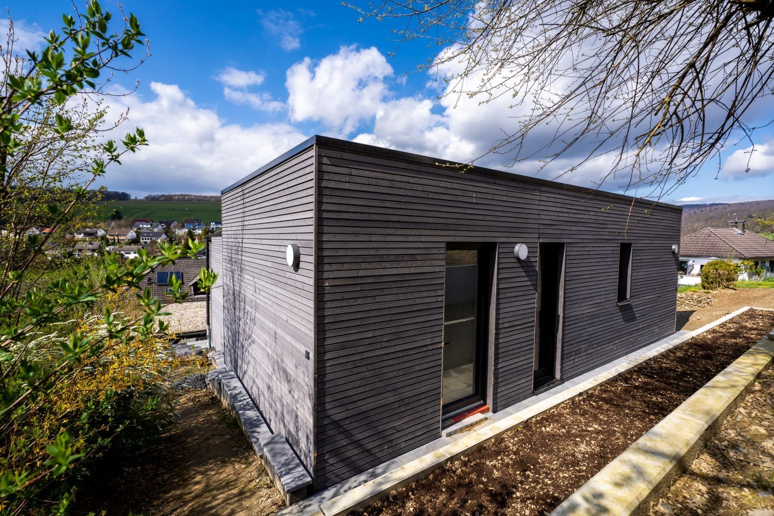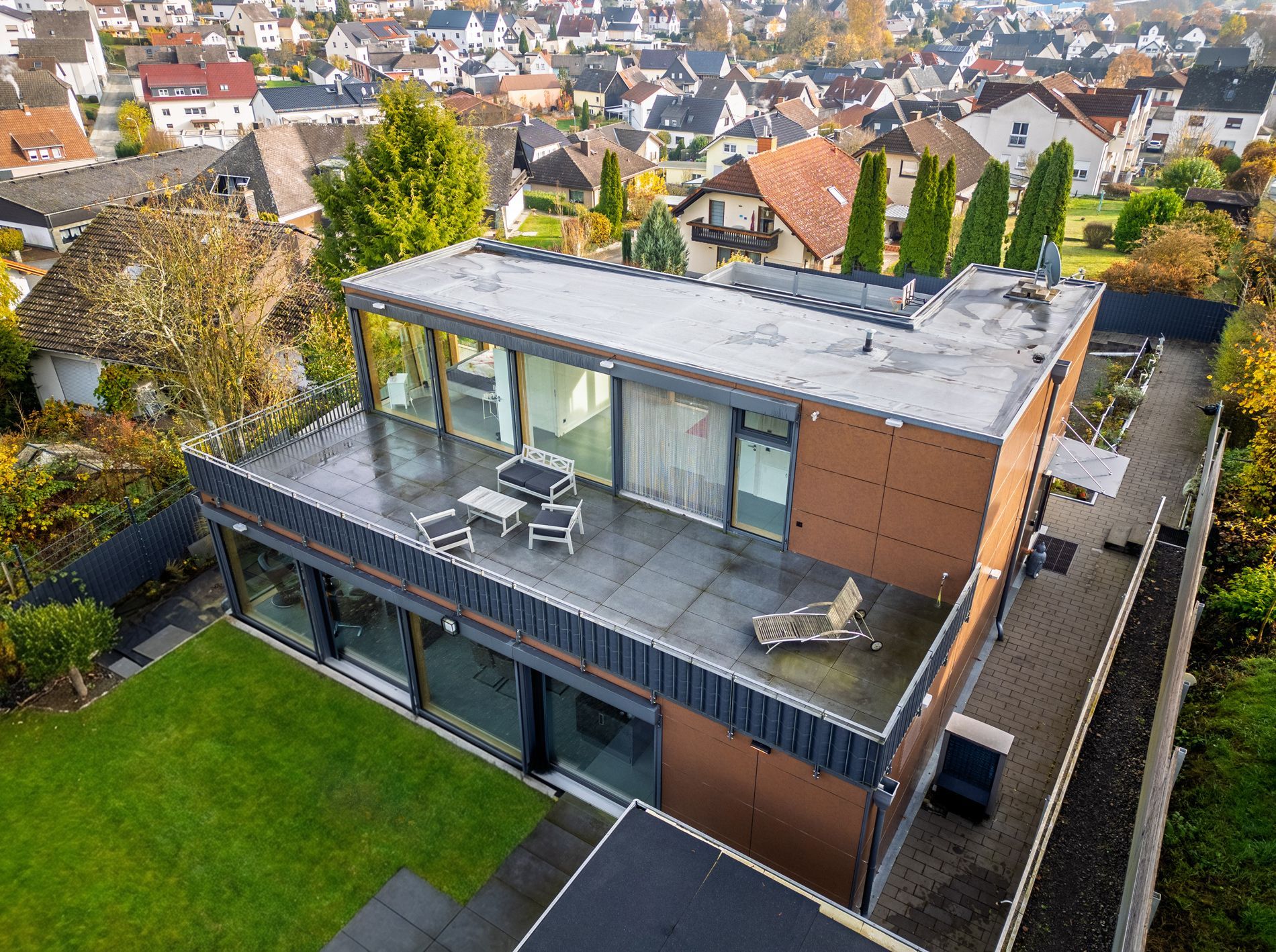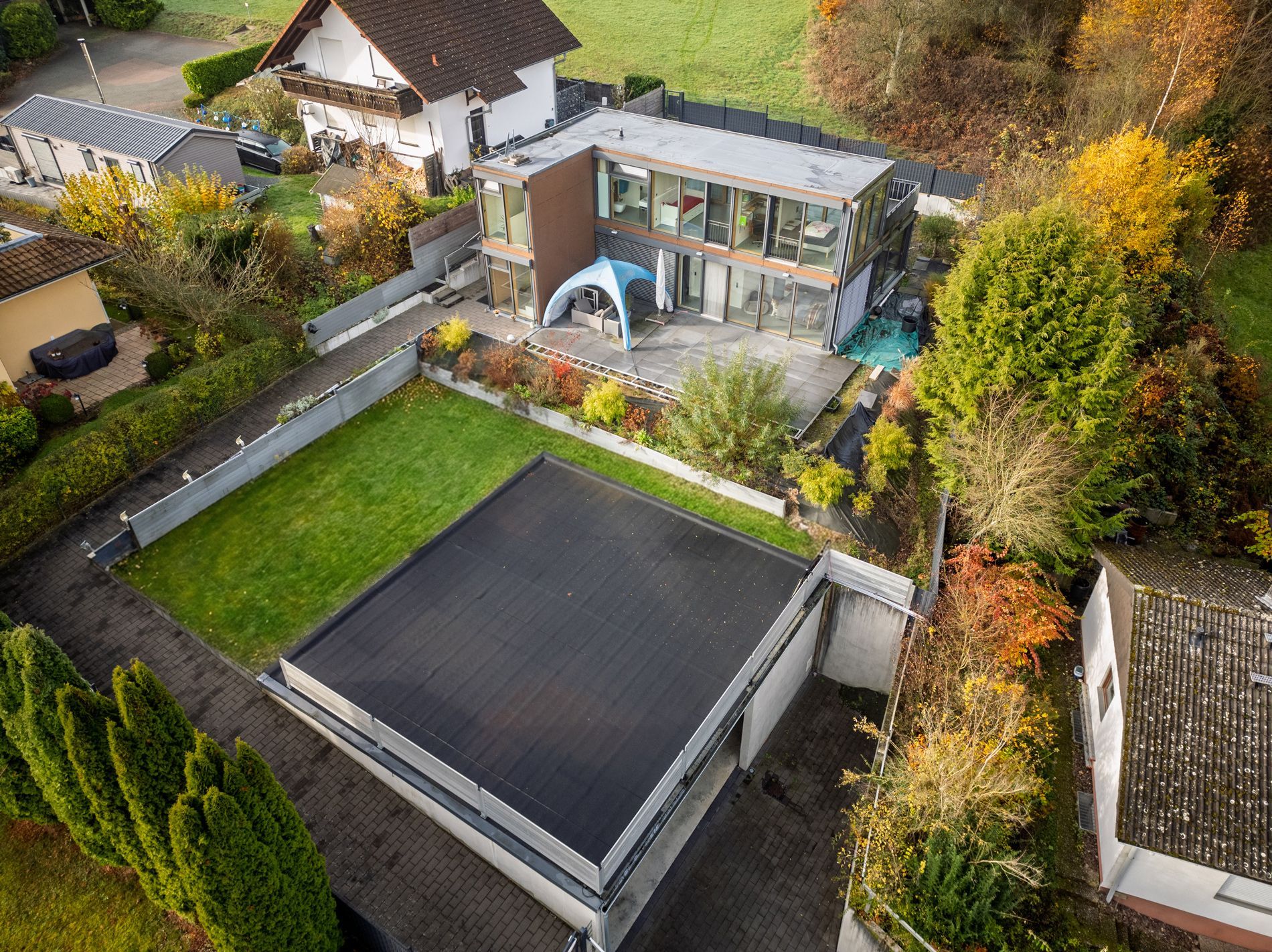 Moderne Luxusimmobilie mit ELW, herrlicher Aussicht und Großraumgarage.