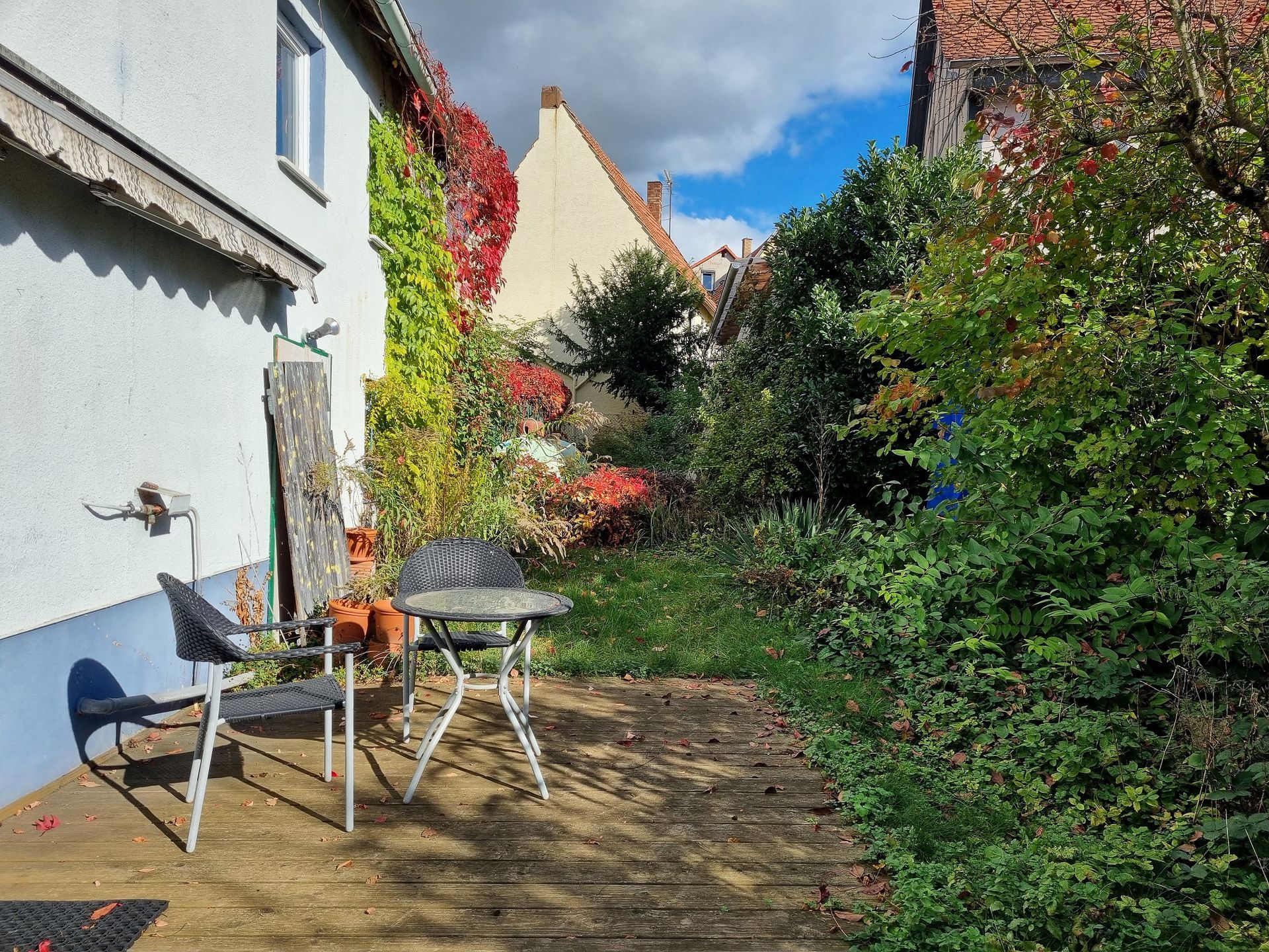 Fachwerkhaus mit Steinanbau, Garten